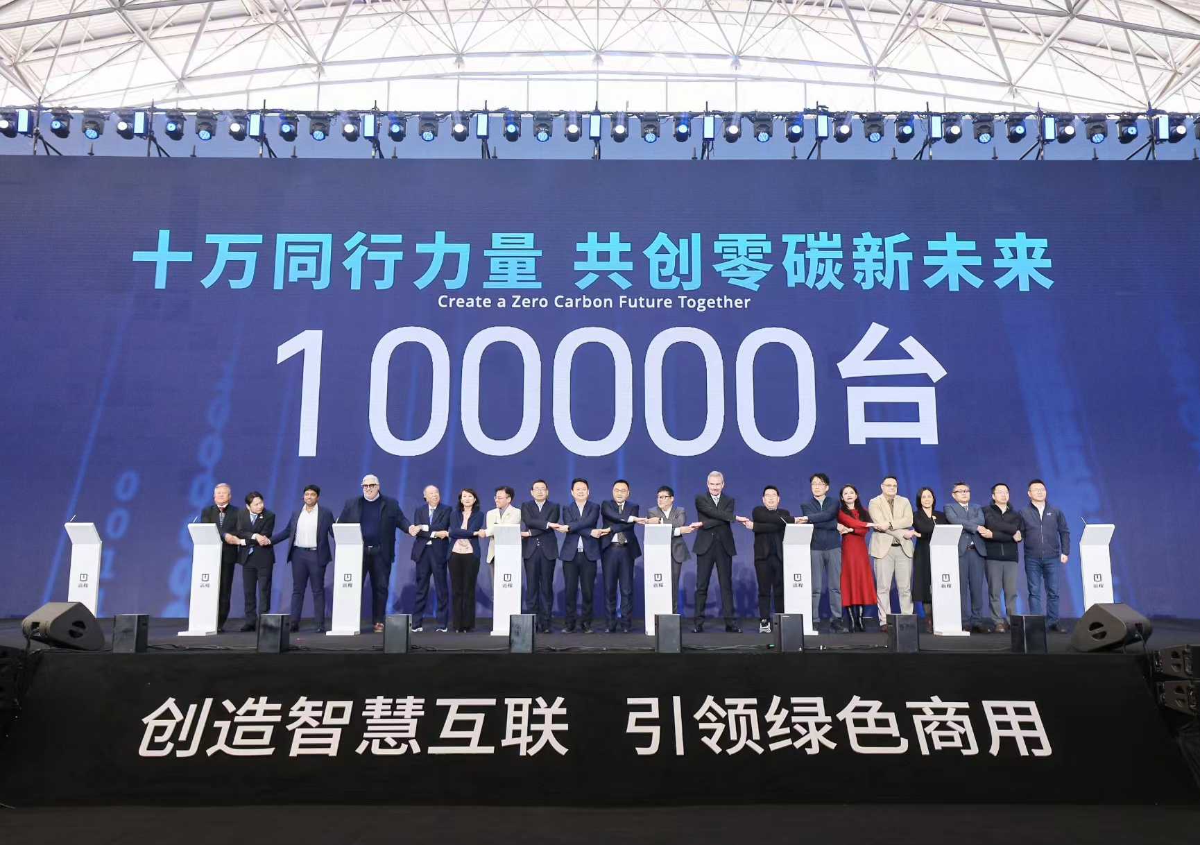 远程新能源商用车出色的产品矩阵,以及完善的生态体系,也吸引了越来越多合作伙伴的青睐。发布会现场,远程还与全球11家合作伙伴共同发布了“绿色陆运践行者 共创零碳新未来”倡议,共同向市场投放10万台新能源商用车,推动行业可持续发展,加速新物流时代到来。