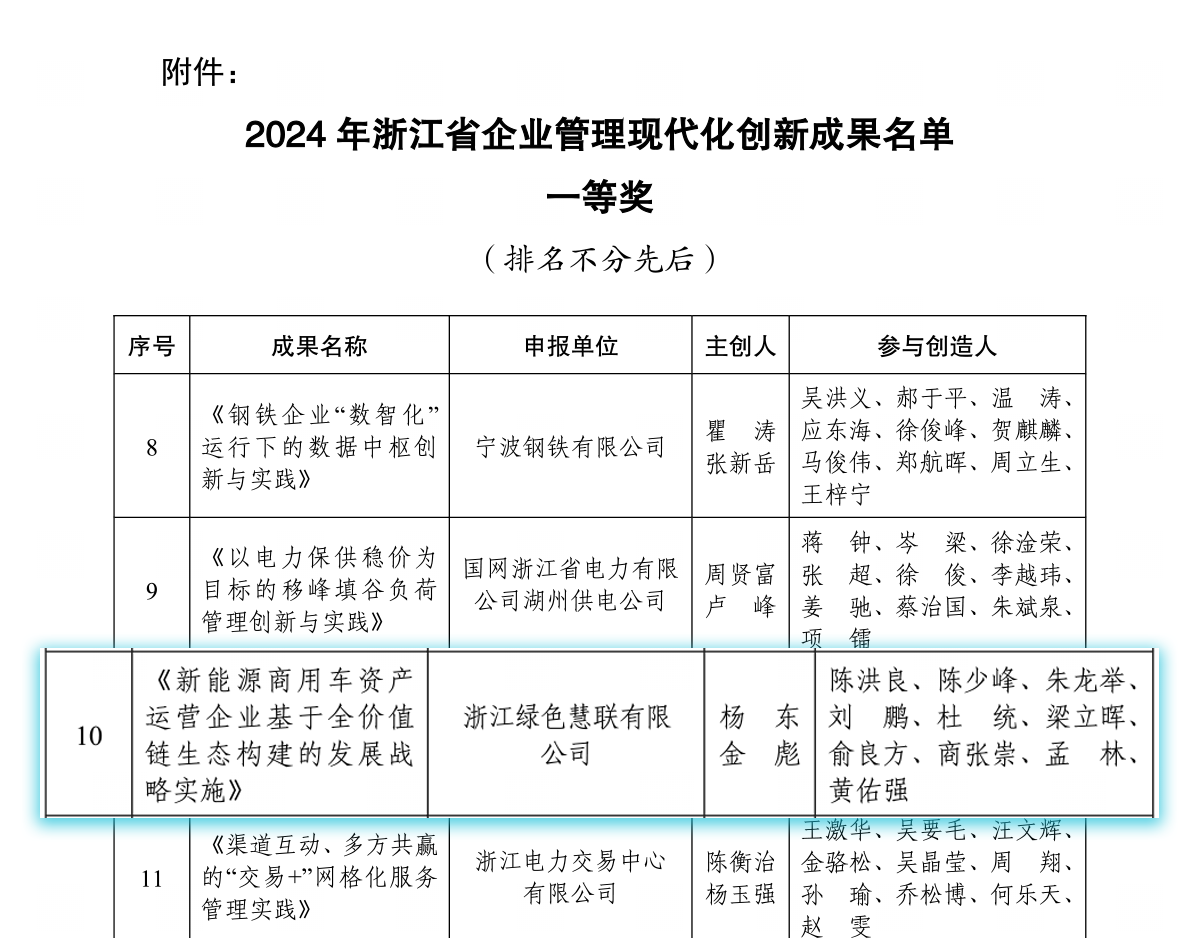 继远程新能源商用车集团创新战略体系获得2023年浙江省企业管理现代化创新成果一等奖、全国企业管理创新大会一等奖后,远程创新不止,旗下生态平台绿色慧联凭借《新能源商用车资产运营企业基于全价值链生态构建的发展战略实施》案例,再次荣获2024年浙江省企业管理现代化创新成果一等奖。